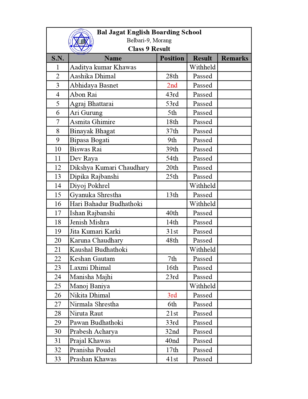 Home » Notices » कक्षा ९ को वार्षिक परीक्षाको परीक्षाफल प्रकाशित