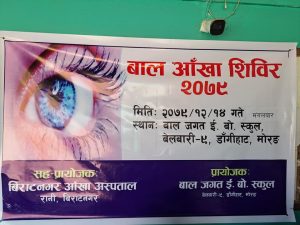 On 2079/12/14, doctors from Birat Eye Hospital, Rani Biratnagar conducted eye examinations for approximately 400 students of our school. For those students who were unable to participate, an agreement has been made between the hospital and the school to schedule another date for their eye check-up. We would like to inform all parents and guardians about this arrangement and encourage them to cooperate for their children’s eye health.